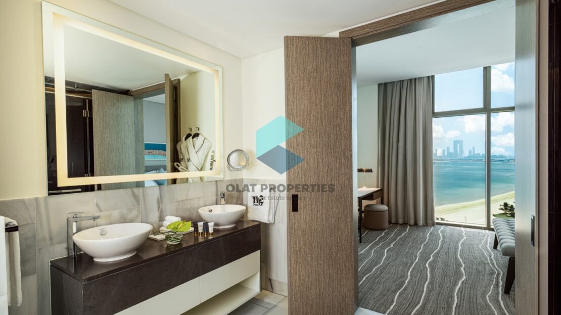 Olat Properties is proud to present this astonishing luxury two bedroom that can be a whole unit or separated as a one bedroom and studio at the same time offering something never seen at the same time an investor and an end user coexist. This luxury sits on the crescent of the palm next to other luxurious projects. There no better beach club than the one The 8 offers, with exotic restaurants, water sport activities, beach access and amazing amenities. This apartment has one of the best views of the marina and palm Jumeirah coastline as well as the sea water. This apartment is bright through out the day with the privileges’ of a serviced apartment and valet parking